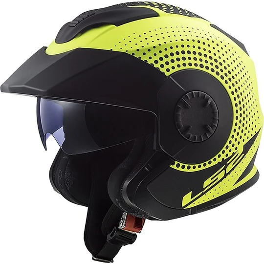 Motorcycle Helmet Jet Double Visor Ls2 OF570 VERSO Spin Yellow Fluo Matt